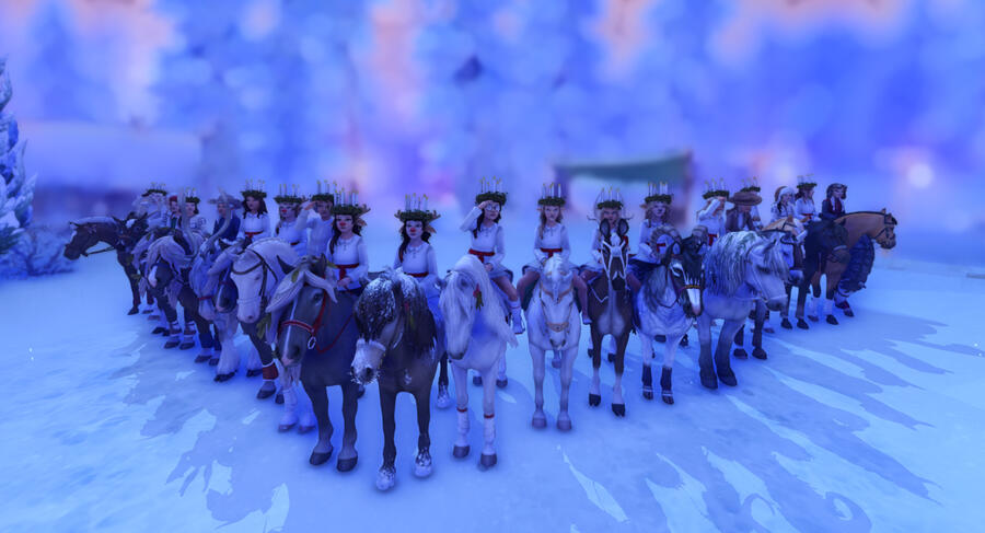 Vi inviterte hele Misty Valley til å bli med på Luciatog gjennom vinterlandsbyen