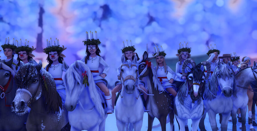 Vi inviterte hele Misty Valley til å bli med på Luciatog gjennom vinterlandsbyen